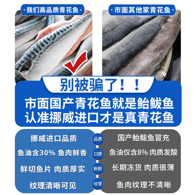 青花鱼挪威进口青花鱼片日式盐渍新鲜鲐鲭鱼烤青占鱼商用冷冻鱼肉