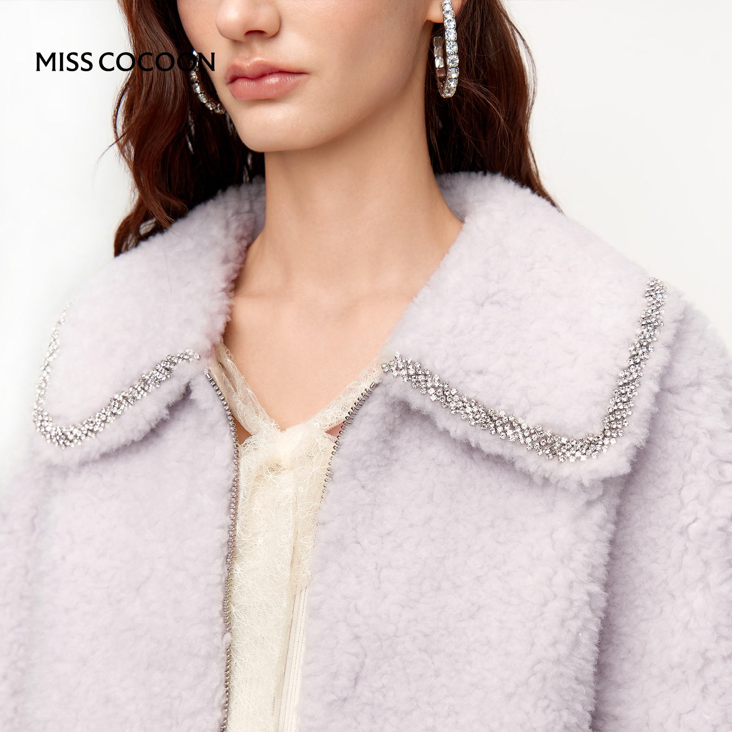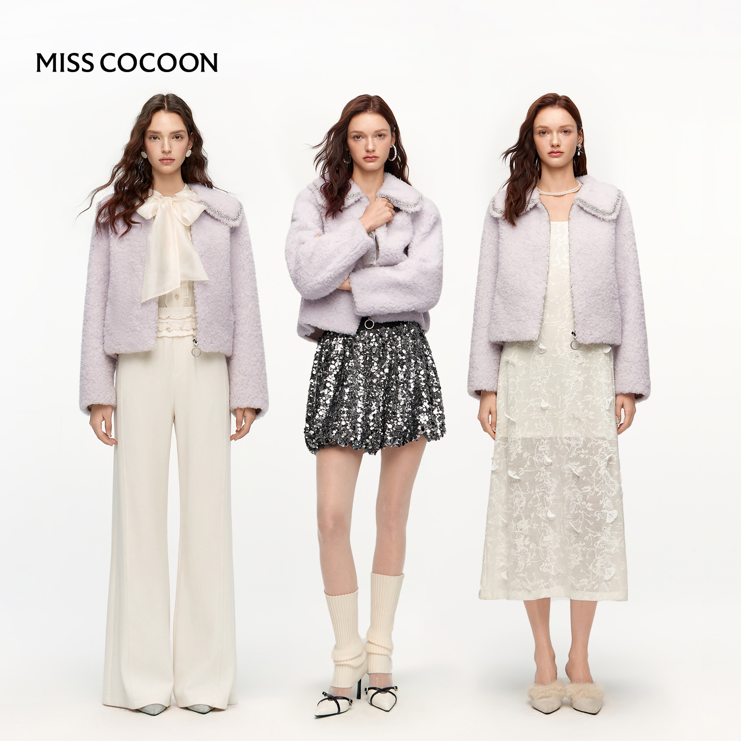 MISSCOCOON可可尼紫色外套女2025冬季新款千金风100%羊羔毛皮草