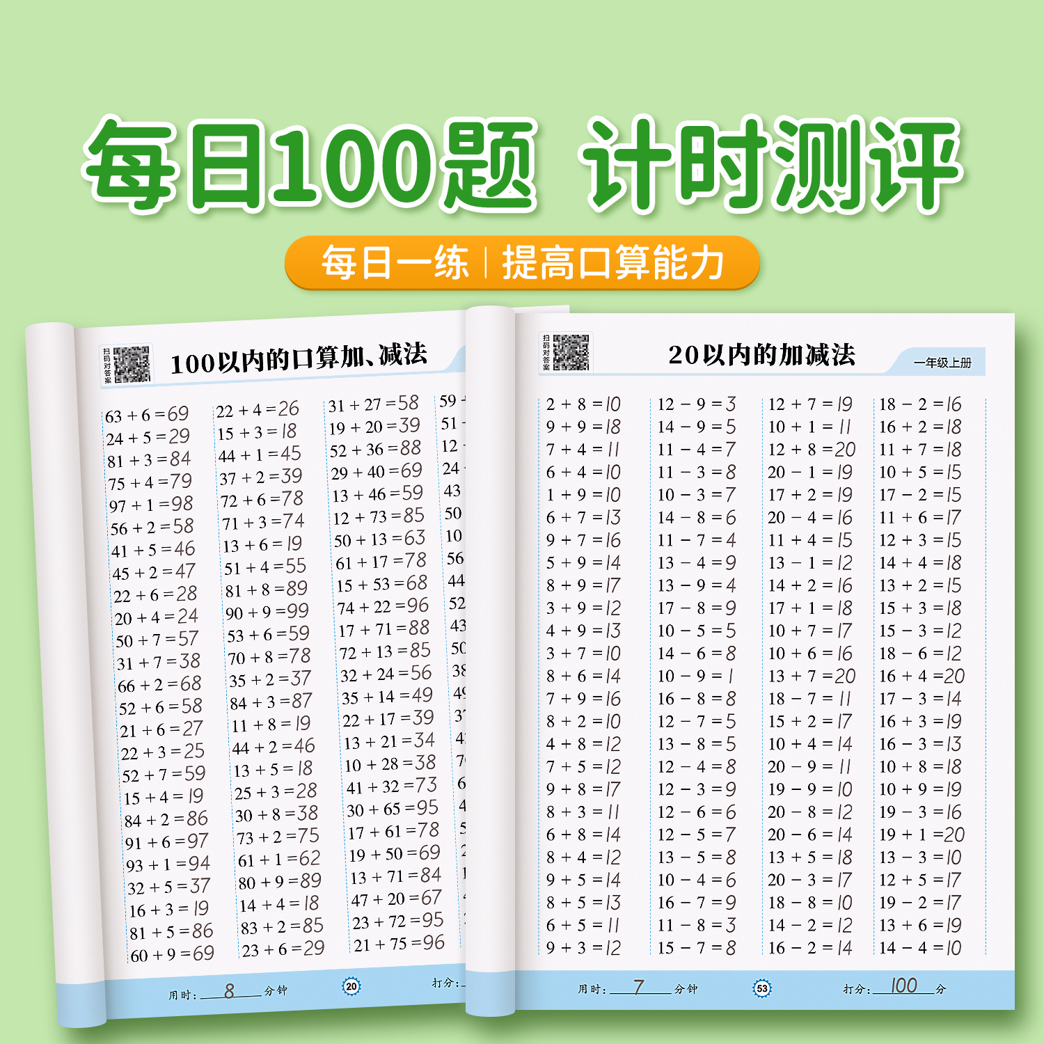 一年级上册下册数学口算天天练二年级口算题卡每天一练20 100以内的加减法专项练习本人教版数学同步练习题册