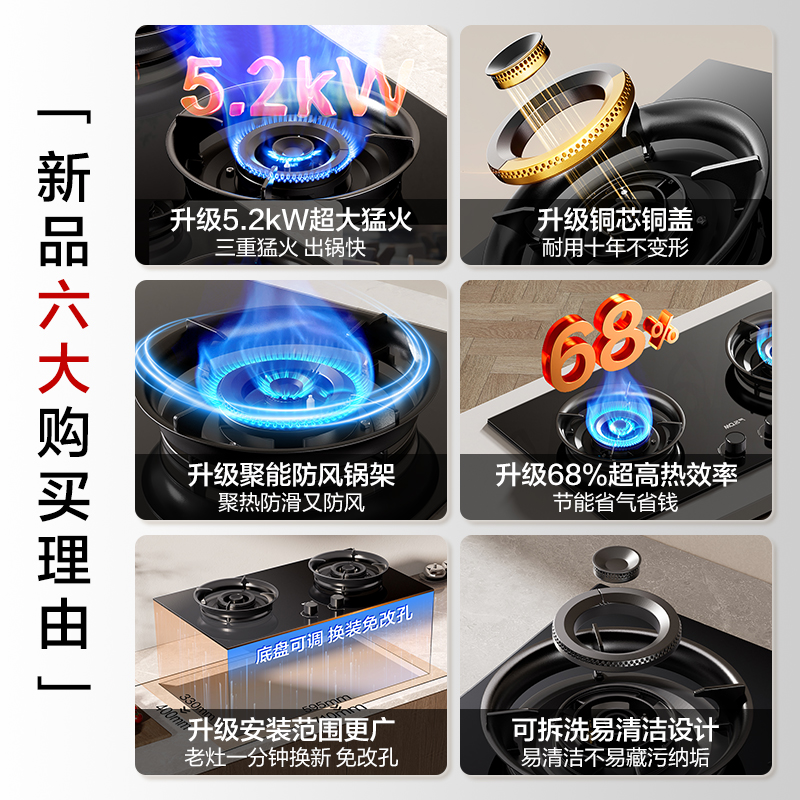 [新品上市]老板名气A6675B灶具家用5.2KW大火力天然气灶液化气灶