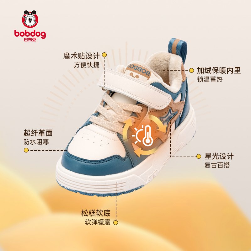 【加绒清仓】巴布豆童鞋官方正品加绒清仓特惠冬季保暖学步棉鞋