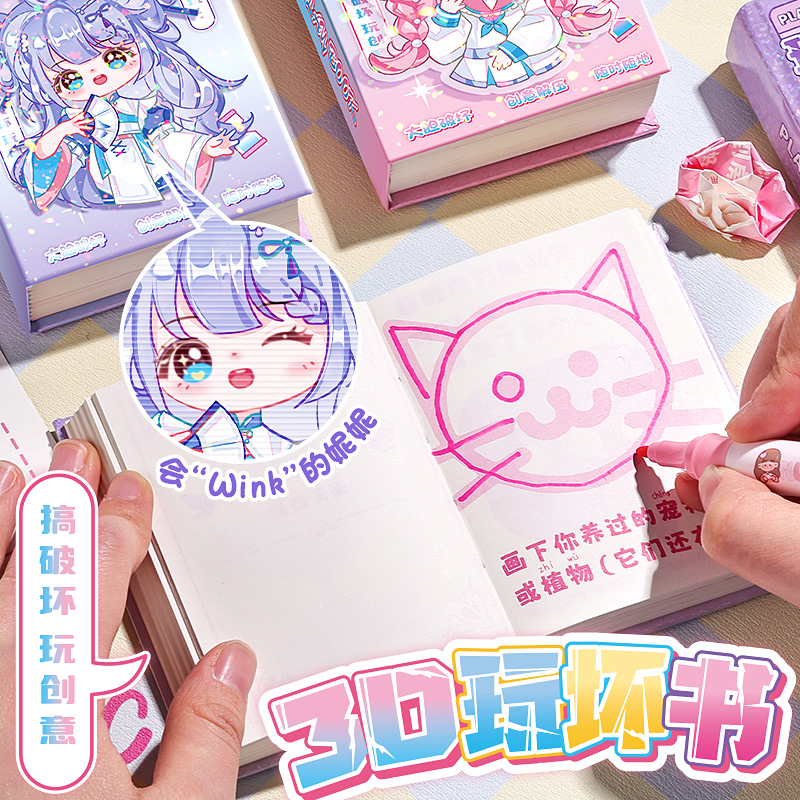 妮妮3D玩坏这本书这个本子女孩二次元网红正版全套超厚解压迷你版小把那一本书玩坏儿童小学生女减压玩具麻薯