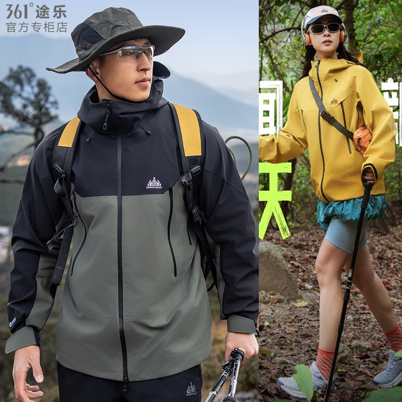 361度户外充分衣雨屏防泼水爬山外套男女新款健身上连帽防风