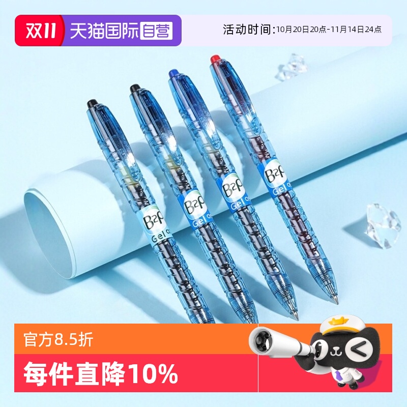 【自营】Pilot百乐中性笔P500金标款大容量0.5mm学生考试刷题走珠笔黑笔蓝色蓝黑色直液式针管笔老师批改水笔