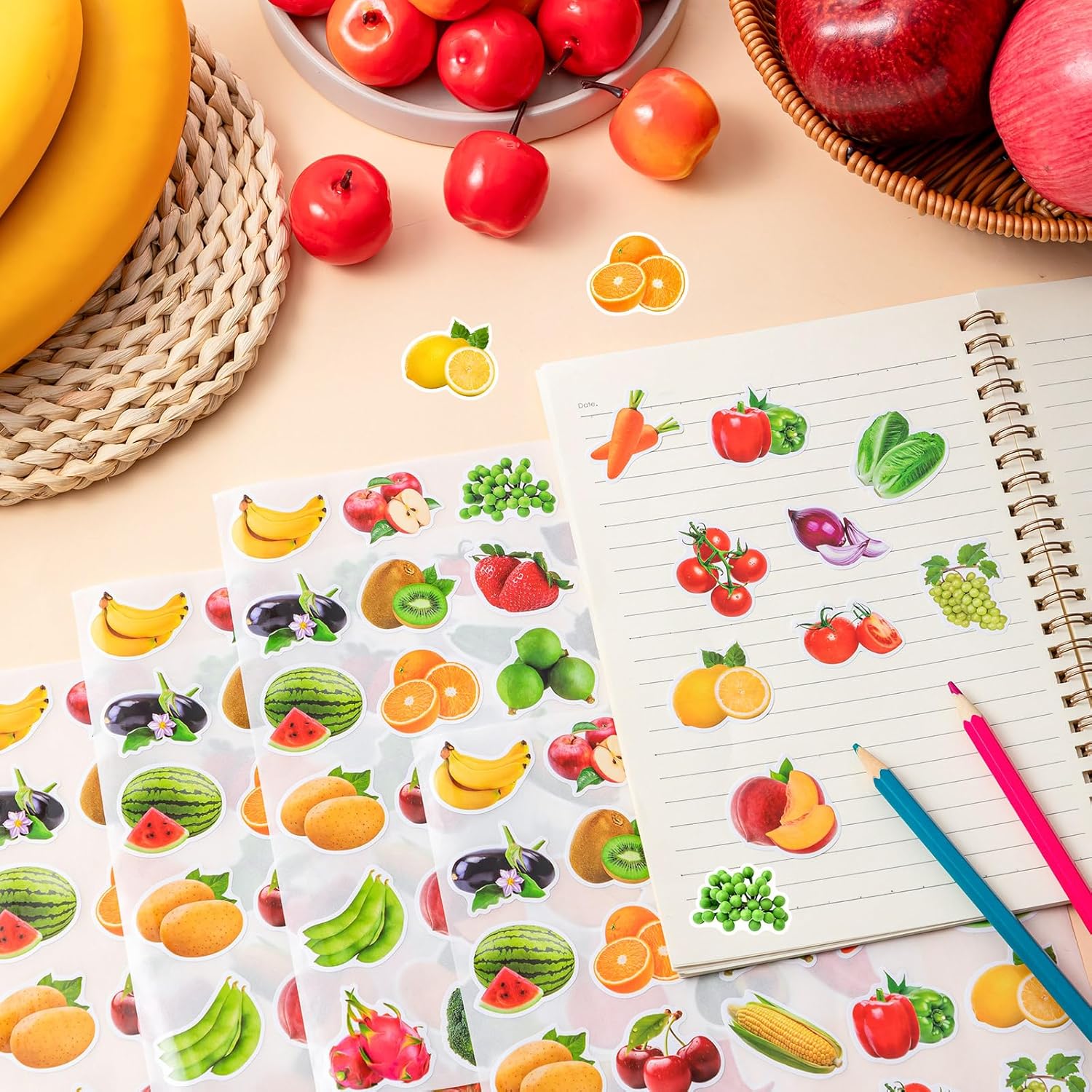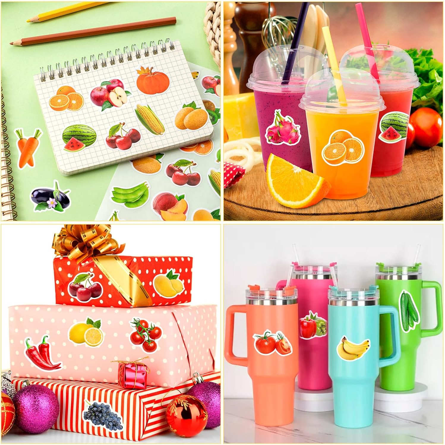 10张/包多种水果蔬菜贴纸写实风格素材分类标记装饰不干胶标签