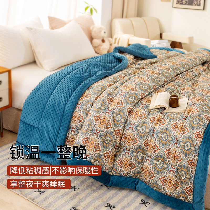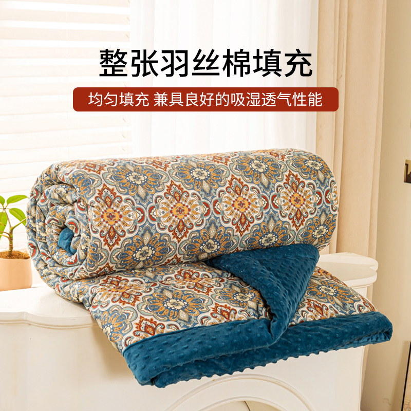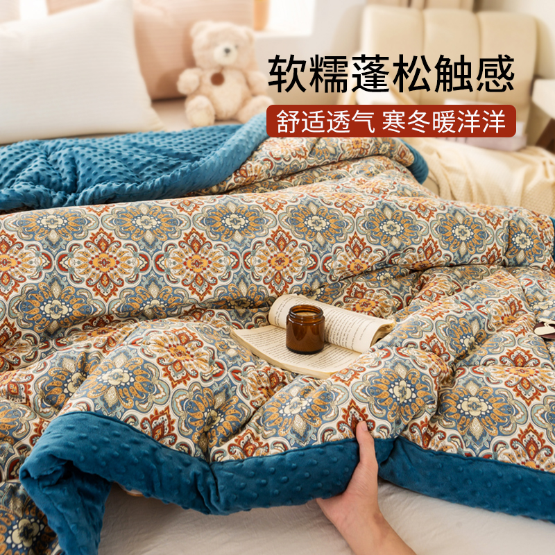如奕宫廷风A类全棉豆豆绒被子冬被加厚10斤保暖双人春秋被棉被
