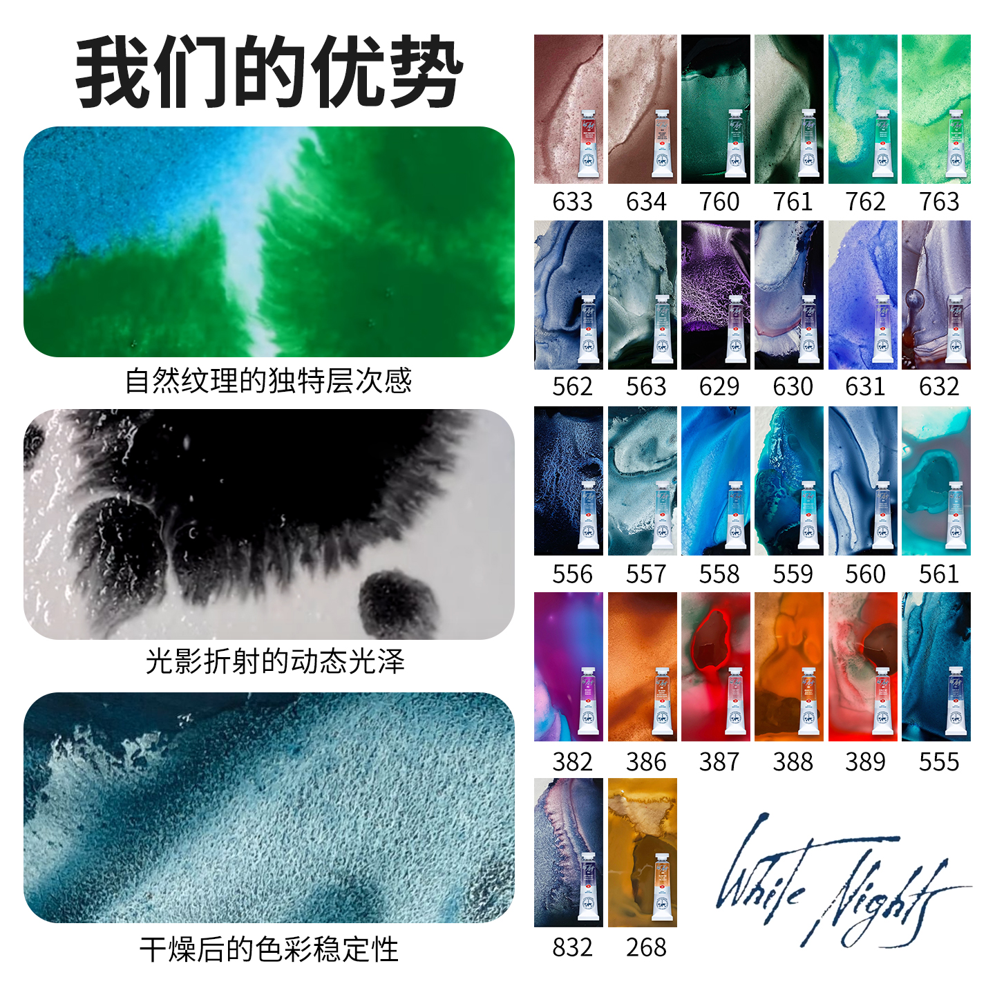 俄罗斯进口白夜沉淀色33色固体管装水彩颜料10ml新色艺术家级