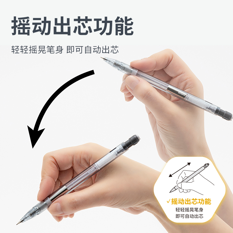 日本ZEBRA斑马自动铅笔KNOCK PENCIL摇摇出铅MA117活动铅笔高颜值摇摇乐小 学生用自动铅不易断芯自动笔0.5
