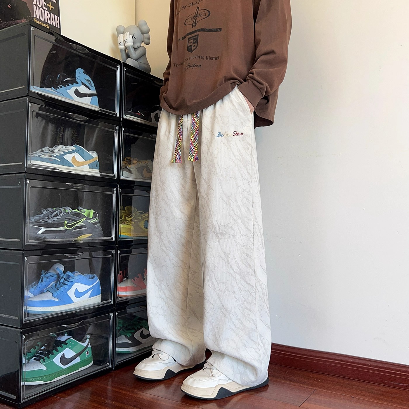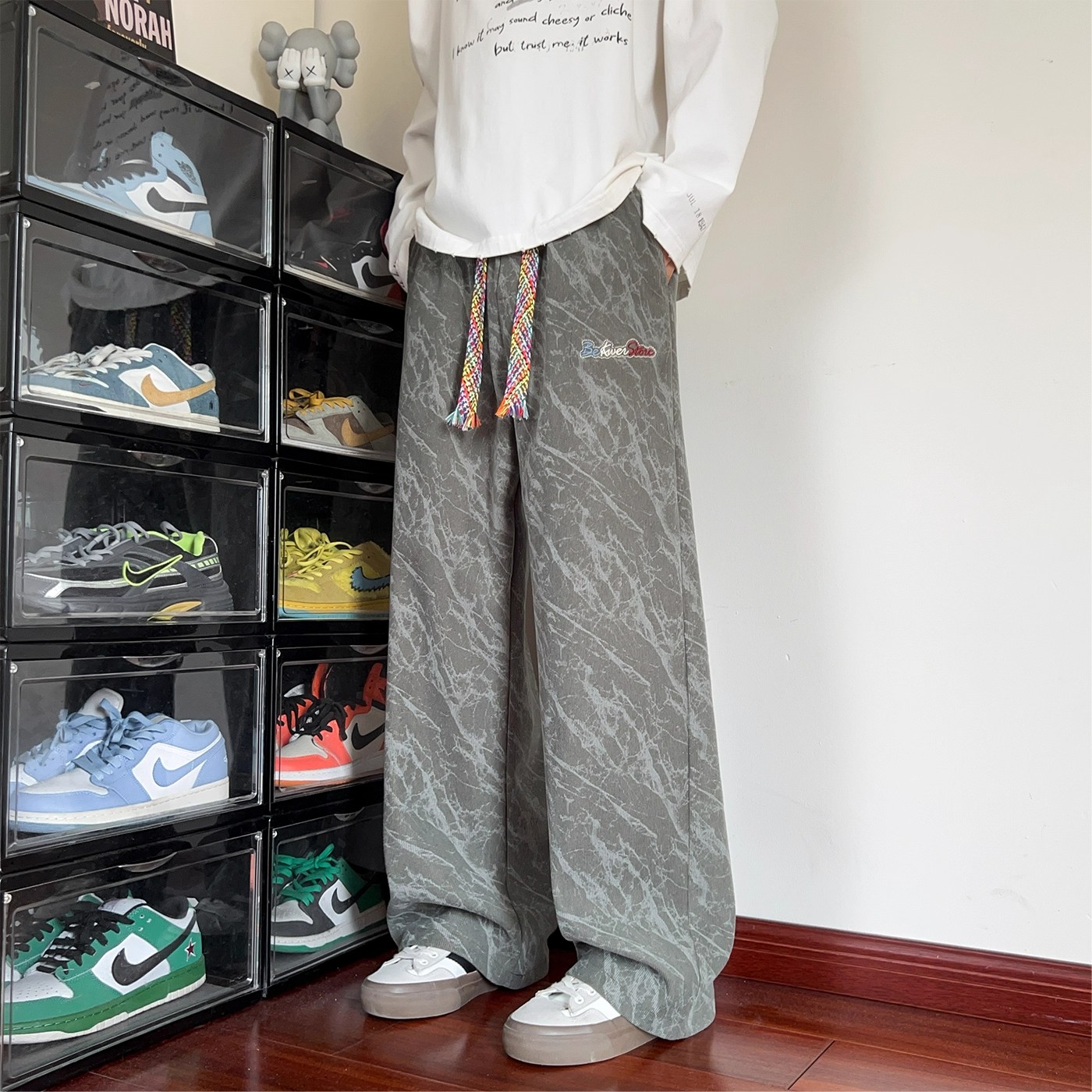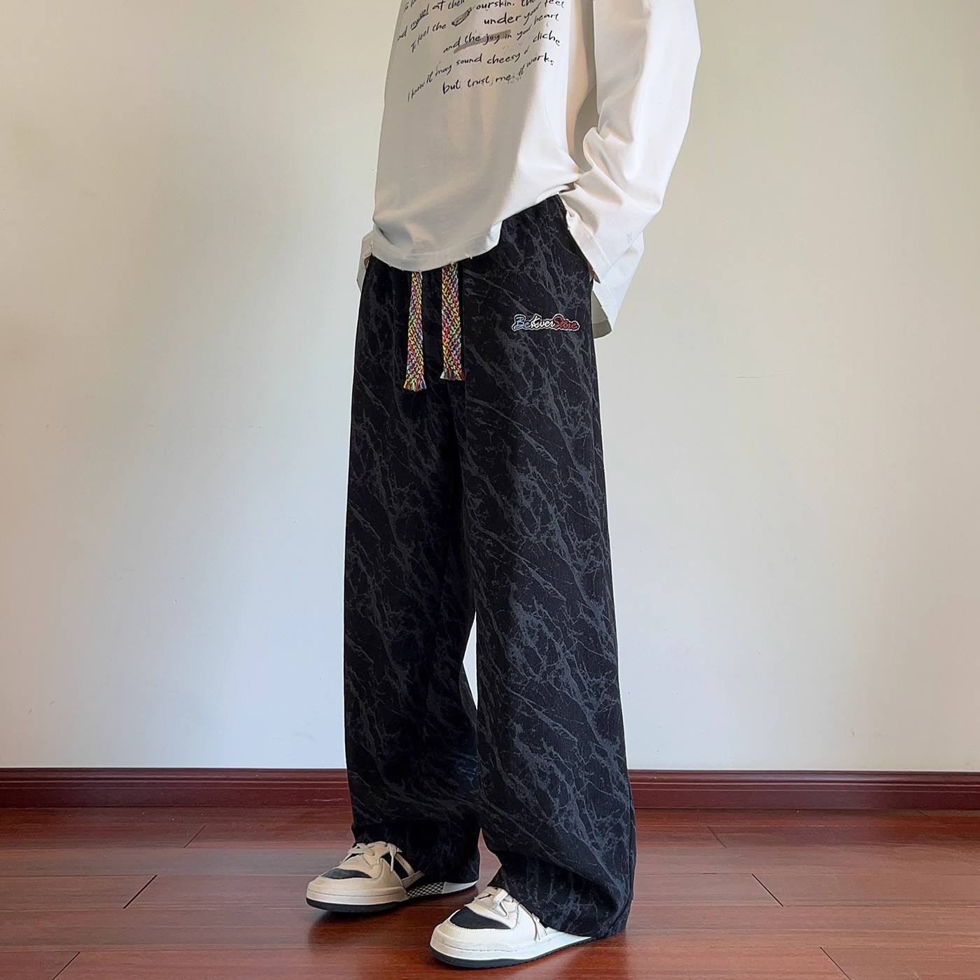 扎染裤子男士春秋季2025新款直筒灯芯绒卫裤宽松阔腿男生运动长裤
