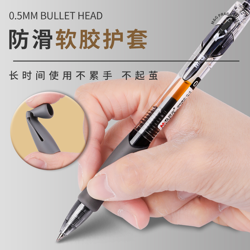 晨光按动中性笔gp1008学生专用0.5子弹头考试碳素黑色水笔圆珠笔