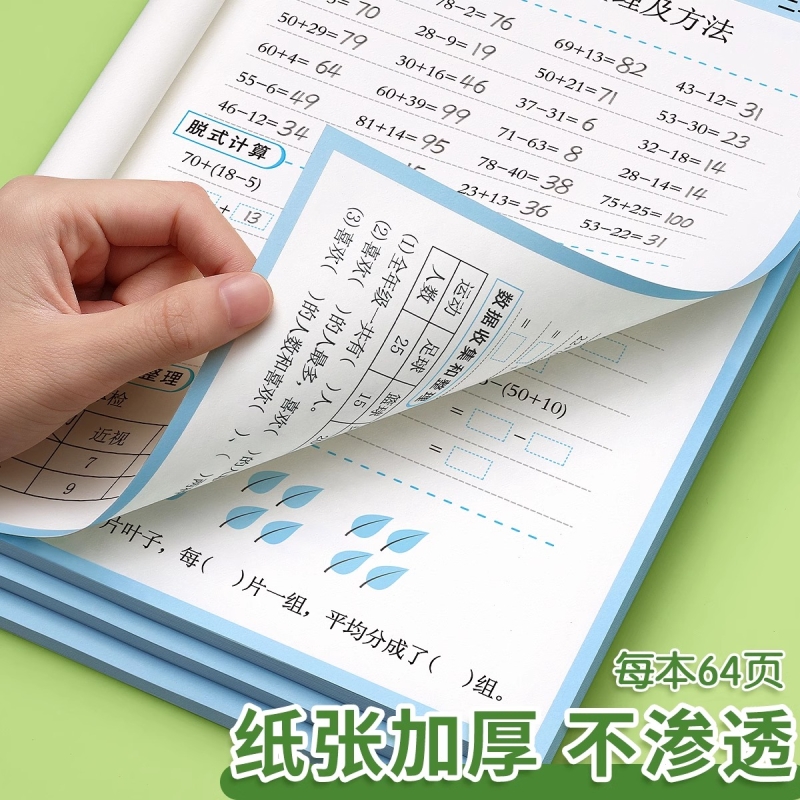 二年级数学口算天天练三四五六年级上册下册口算二升三数学练习题卡计算题强化训练题乘法专项练习本册每天一练同步练习册思维训练