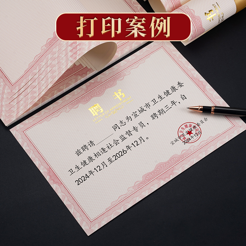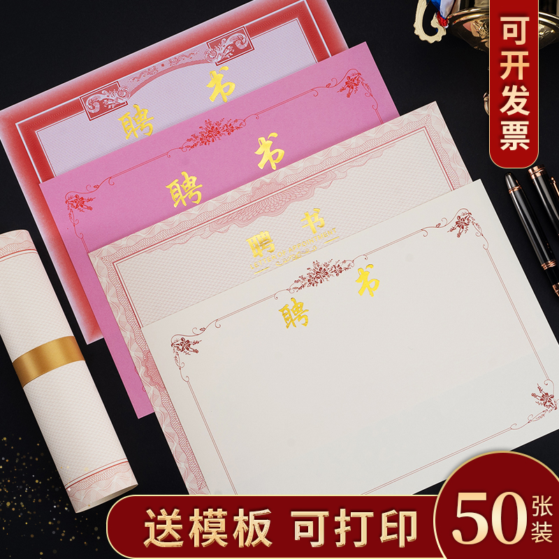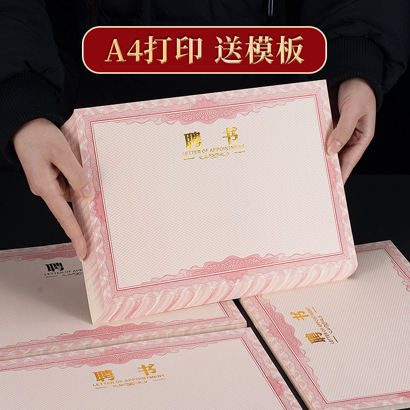 加厚烫金A4聘书聘任书聘请书内页50张装证书内芯纸可打印包邮