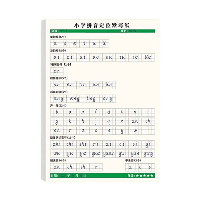 小学拼音定位默写纸专项训练幼小衔接汉语拼音声母韵母认读音节纸幼儿园字母定格纸学前班一年级拼写书写纸