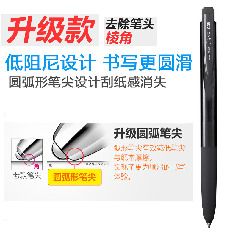 日本uni三菱umn155中性笔学生考试专用按动水笔加笔芯黑色办公日常低阻尼子弹头替芯套装0.38/0.5mm签字笔