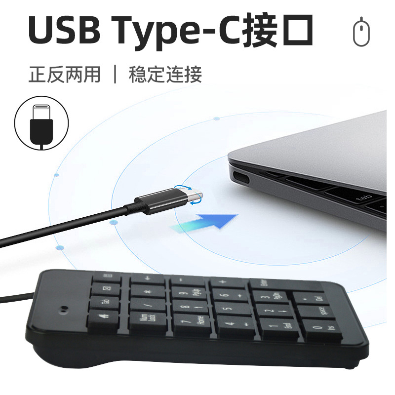 有线type-c USB-C 键盘银行出纳医院办公适用迷你USB 数字小键盘