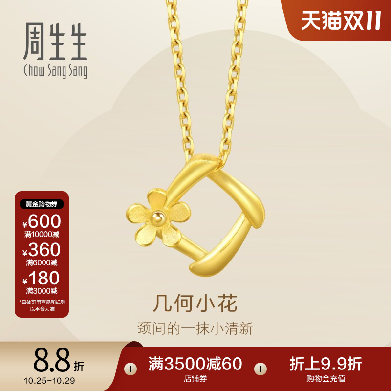 周生生足金花吊坠黄金几何挂坠女款金饰珠宝29132P计价
