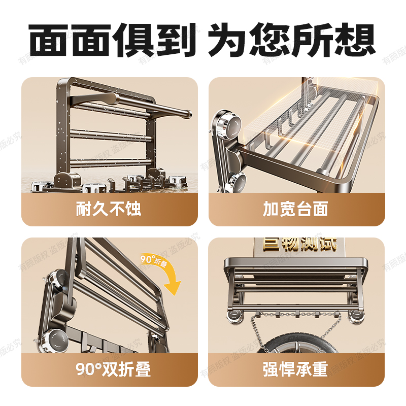 双杆吸盘毛巾架家用浴室免打孔收纳带挂钩干湿两用轻奢挂杆置物架