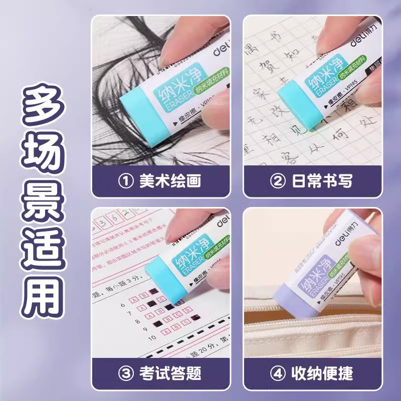 得力纳米橡皮擦幼儿园用无屑超干净不留痕橡皮小学生专用无毒铅笔橡皮檫高颜值擦字成线儿童美术素描小像皮擦