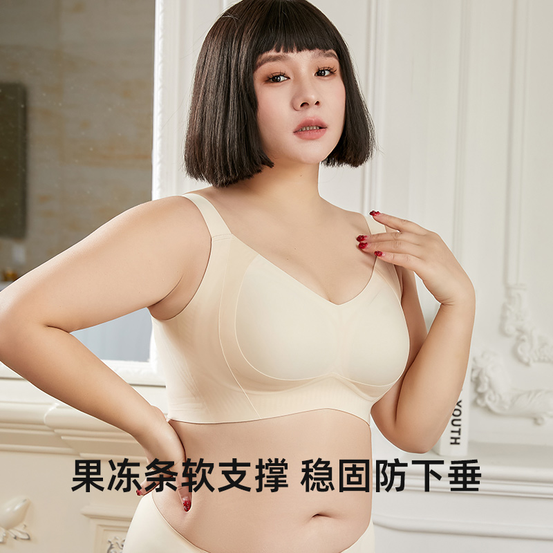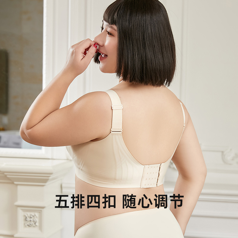 润微提拉女王内衣女夏薄款大胸显小无痕大码调整防下垂粉底液文胸