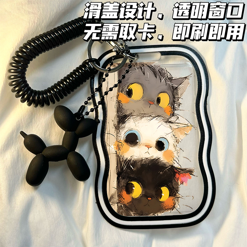 三只探头小猫NFC感应卡套学生滑盖卡套饭卡地铁电瓶车小区卡包学生卡公交卡身份证件门禁卡工作证件套