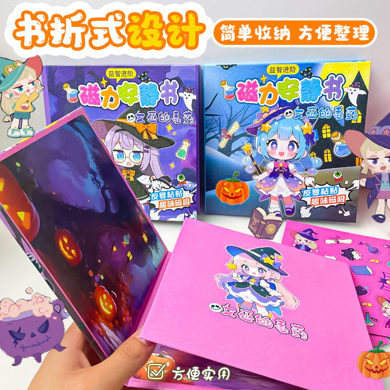 女巫的毒药磁力安静书新款女孩免裁剪手工diy儿童玩具磁吸换装贴