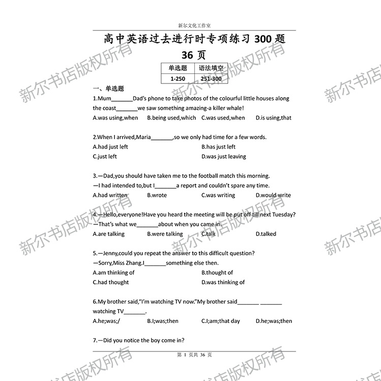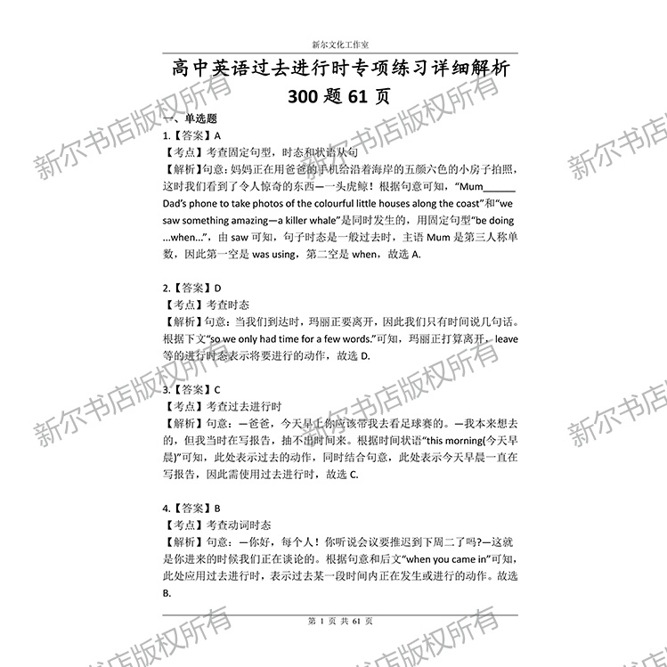 高中英语态过去进行完成现在将来进行一般过去将来现在练习册10本