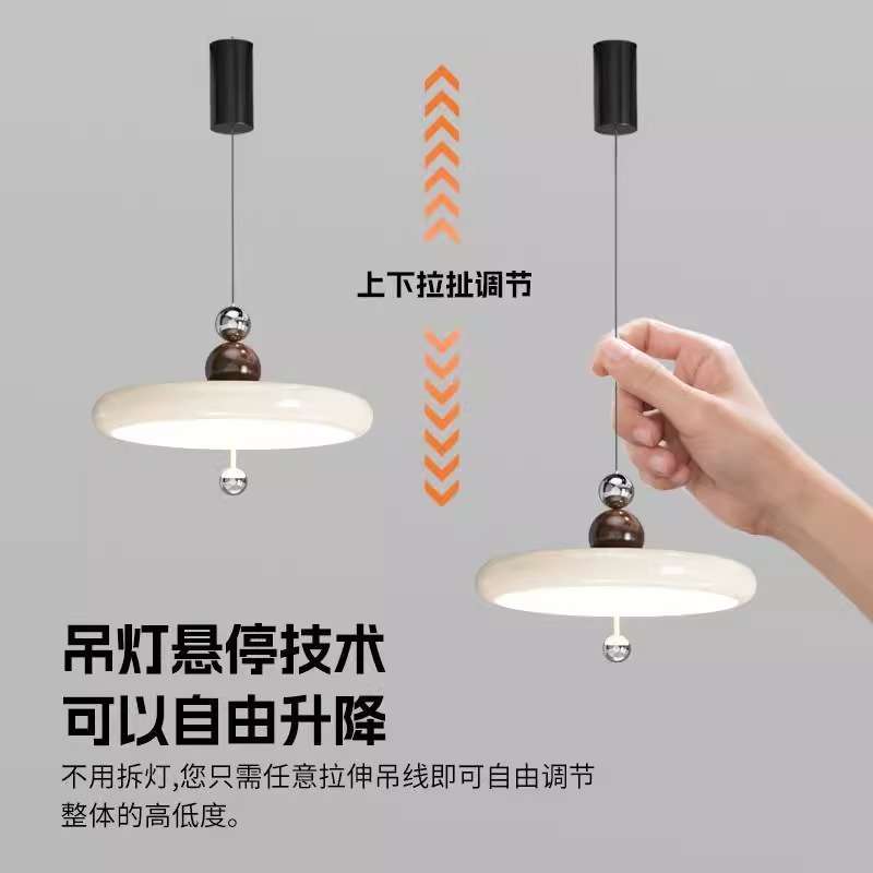 新款中古风餐厅吊灯明装可移动轨道奶油风现代简约饭厅升降悬停灯