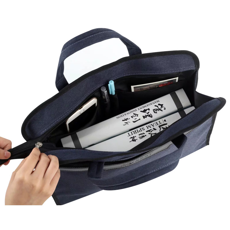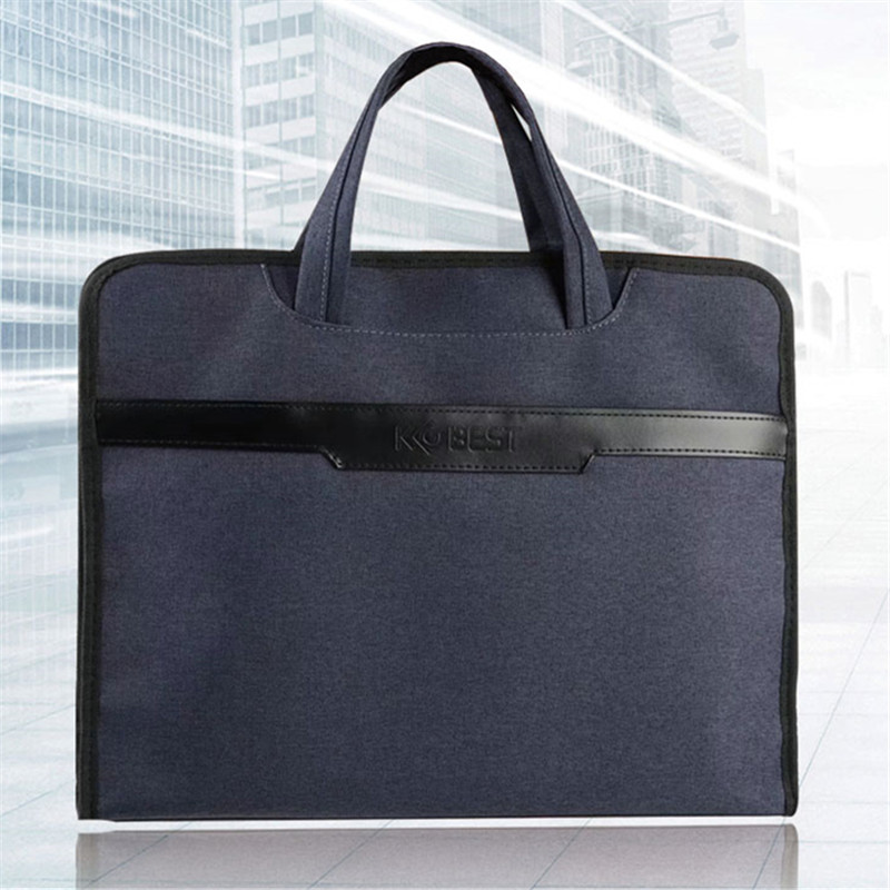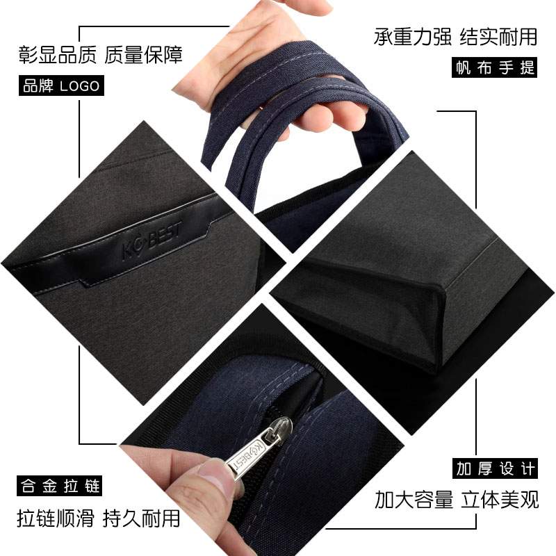 康百手提文件袋多层拉链商务公文包男帆布简约防水办公包多功能会