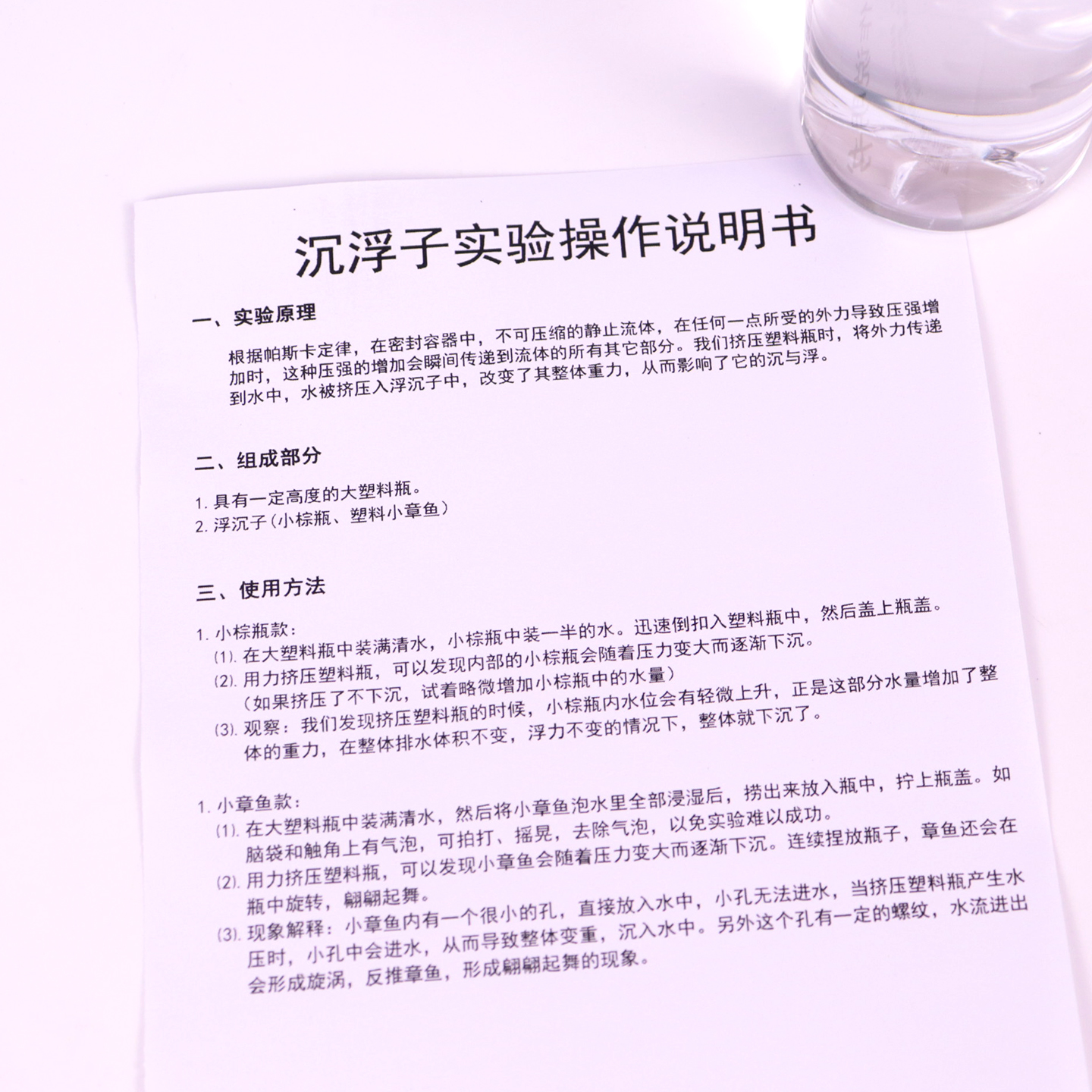 自制浮沉子小制作材料沉浮子水中沉浮章鱼潜水艇沉浮原理小学生儿童科学实验diy教具浮力侧重物理力学教学