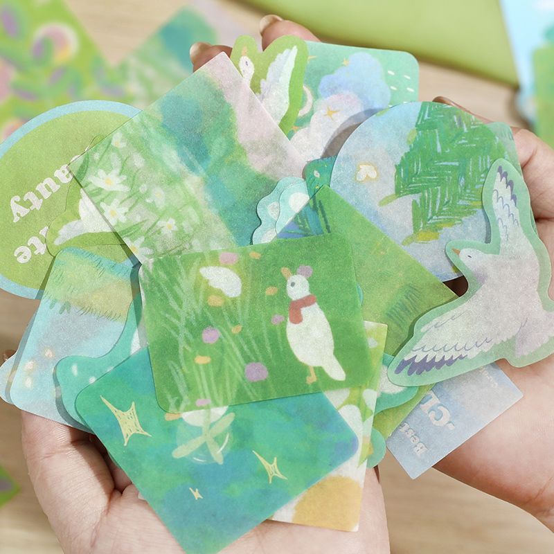 信的恋人 和纸大贴纸包《星群的自由梦》梦幻童趣感场景插画主题手账拼贴素材植物花卉图案手账装饰贴纸