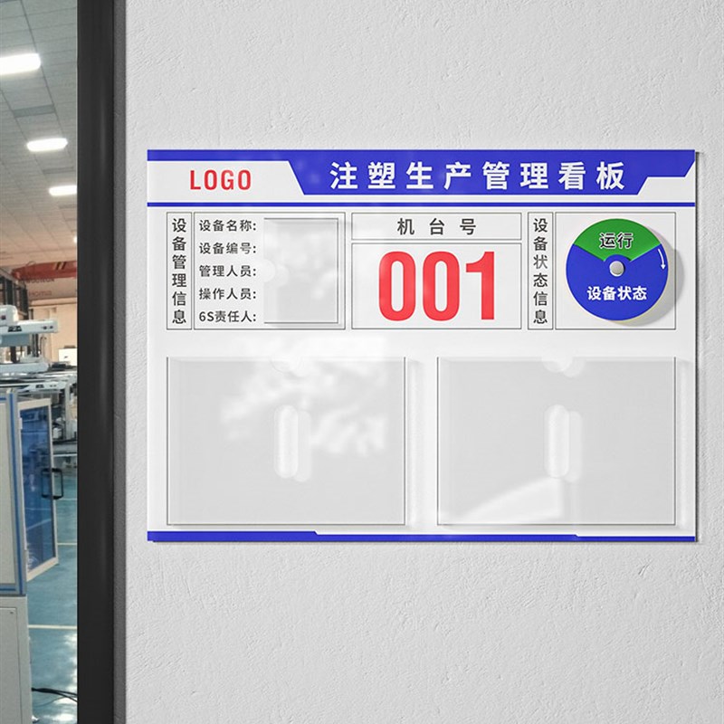注塑工厂生产车间标识牌看板公示栏亚克力卡槽设备运行状态管理维