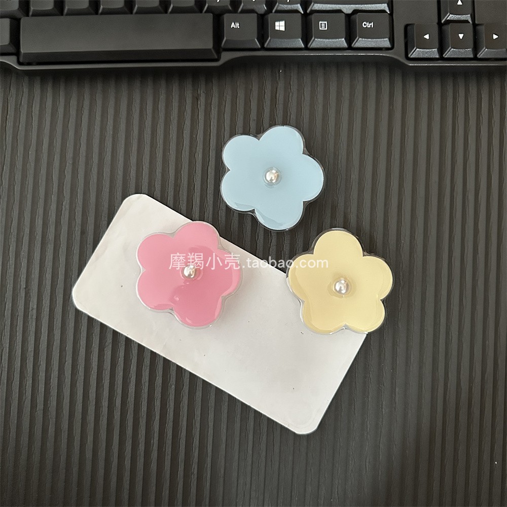 手机壳支架黏贴式通用韩版ins甜妹少女珍珠花朵气囊支架可伸缩新