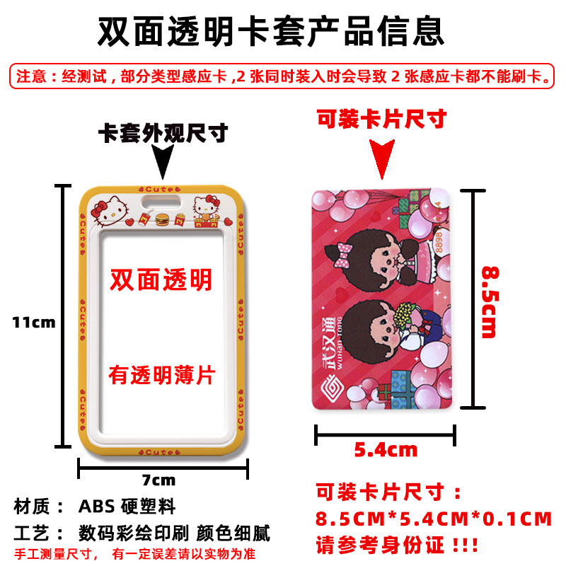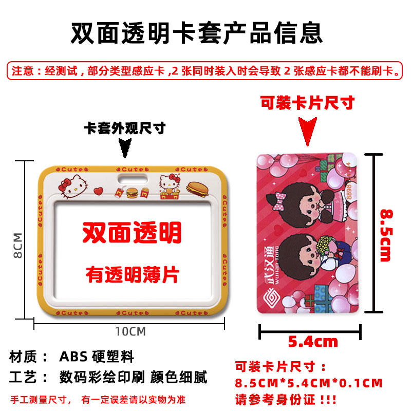 可爱卡通双面透明麦门kitty猫咪饭卡卡套公交地铁卡门禁卡保护套横版护士证件胸牌易拉扣医护胸卡伸缩校园卡