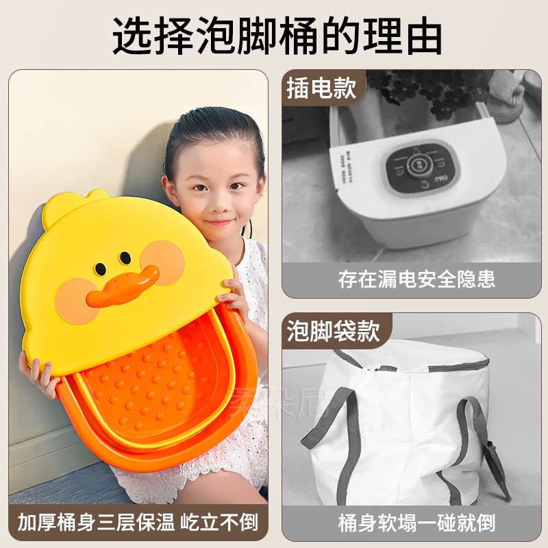 2024新款儿童专用泡脚桶洗脚盆家用折叠过小腿小孩加厚保温洗脚桶