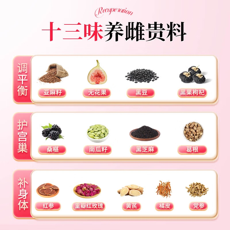 北京同仁堂黄体酮养雌茶红参亚麻籽无花果干黑豆黑枸杞桑葚养生茶