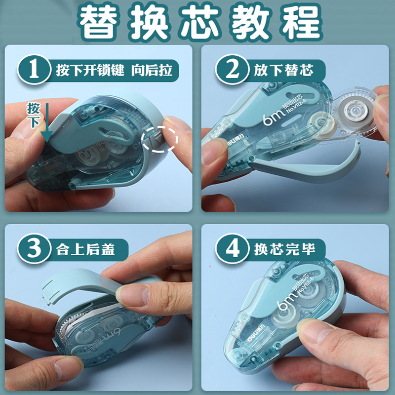 得力按动修正带学生用可换替芯涂改带小学初中生专用大容量修改带实惠装女生高颜值黑科技网红改错带无痕去字