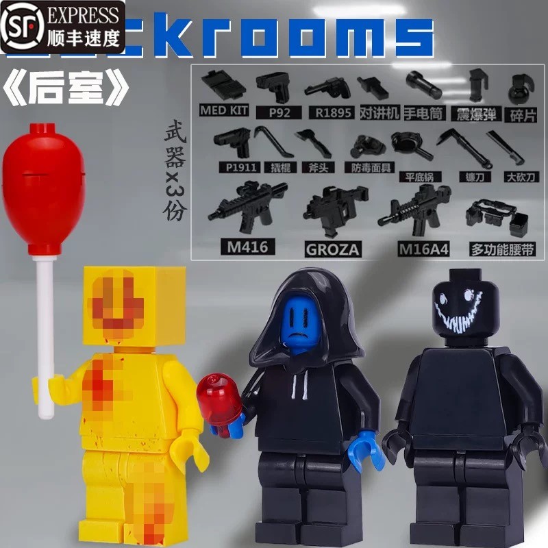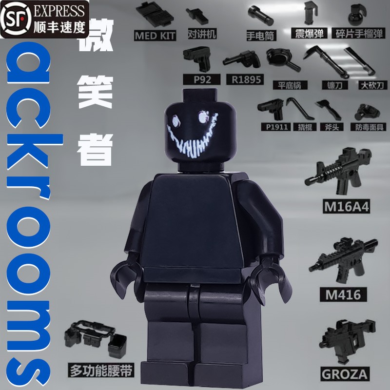 兼容乐高后室暗房积木扫兴客派对客人仔backroom微笑者拼装玩具