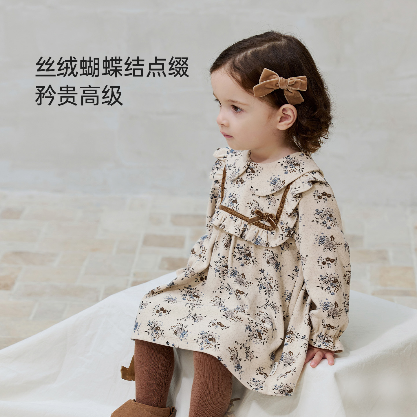 babylove女宝宝连衣裙春秋棉莫微绒法式裙子婴幼儿复古文艺公主裙