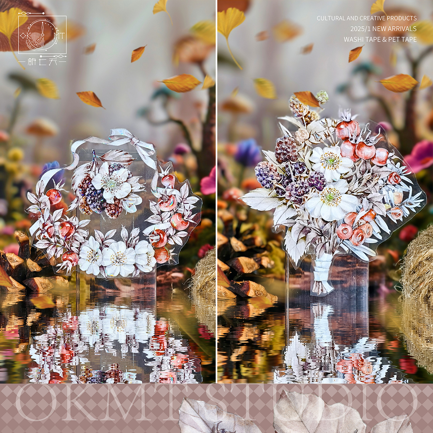 OKMT5月新品造景花卉字素手帐和纸胶带 落雨声 绿茵城堡 闲暇街角