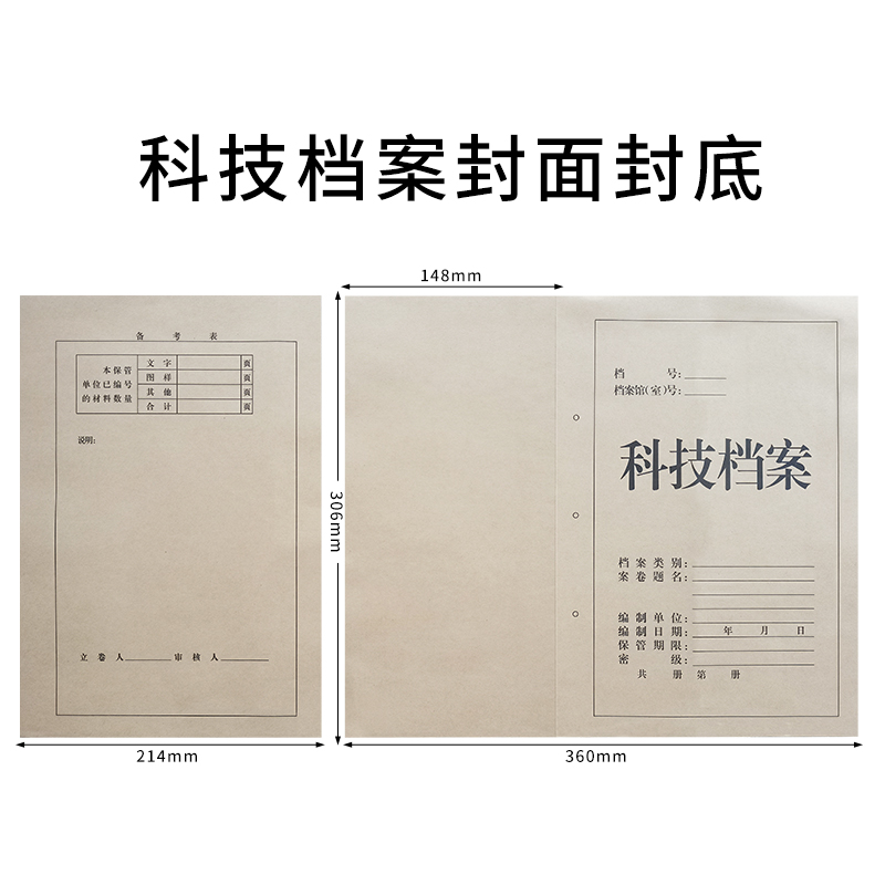 100套裹背A4科技封面木浆无酸加厚150g牛皮纸档案封皮卷皮可订做