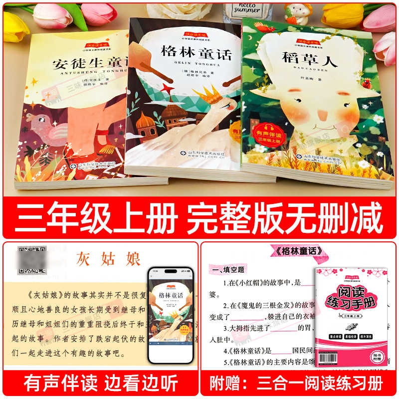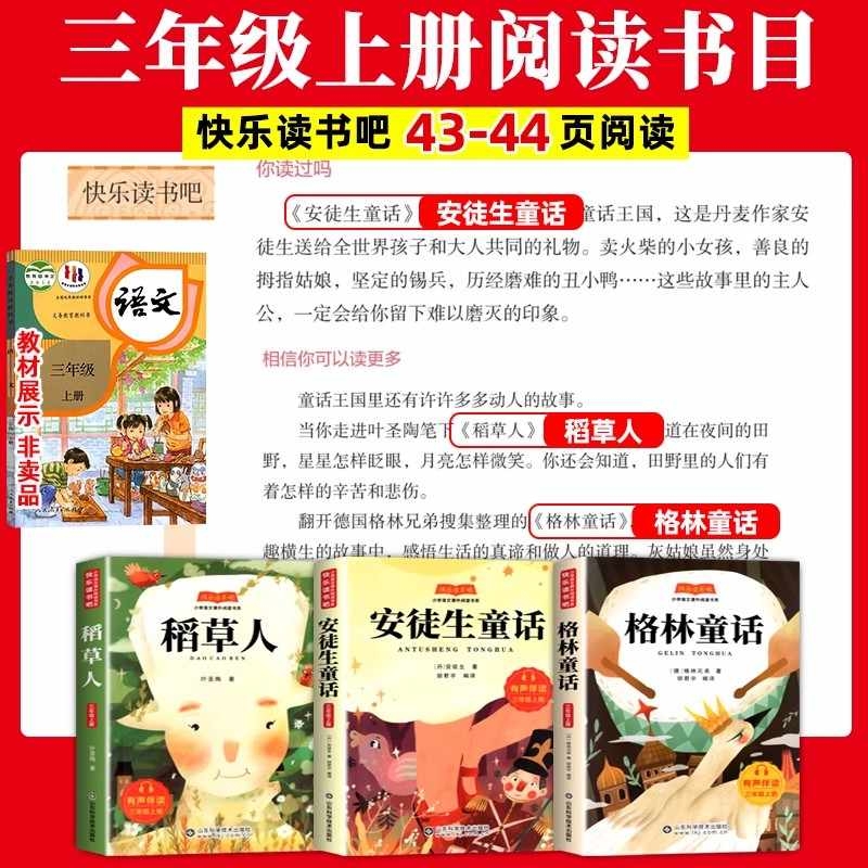 3册稻草人三年级上册必读正版的课外书安徒生童话格林童话快乐读书吧三上阅读书籍稻草书叶圣陶伊索寓言中国古代寓言故事下册书目
