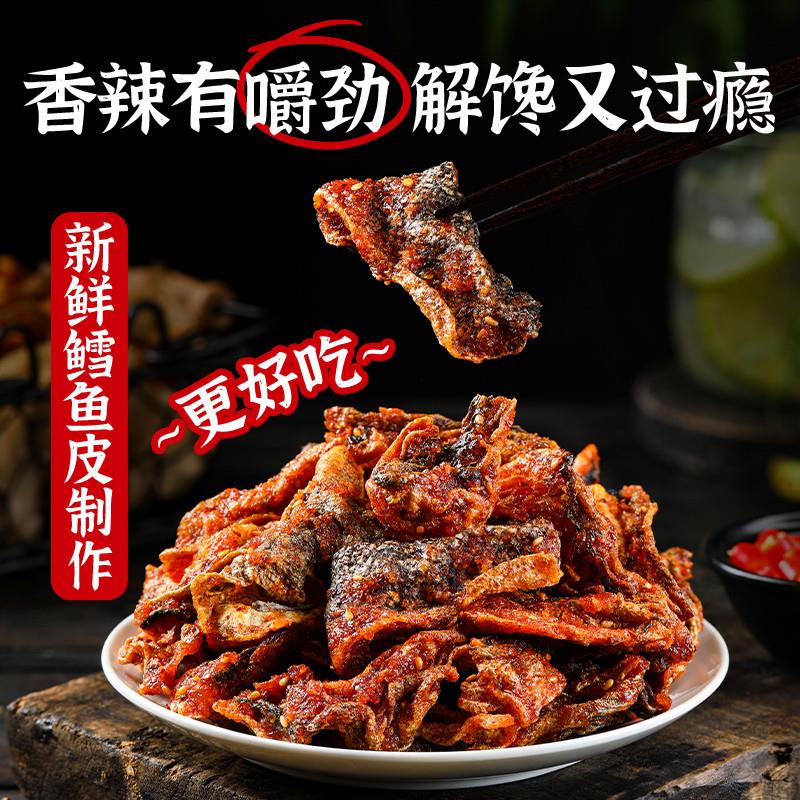 香辣鱼皮250g海鲜零食香脆干蜜汁甜辣麻鳕鱼皮开袋即食解馋好吃
