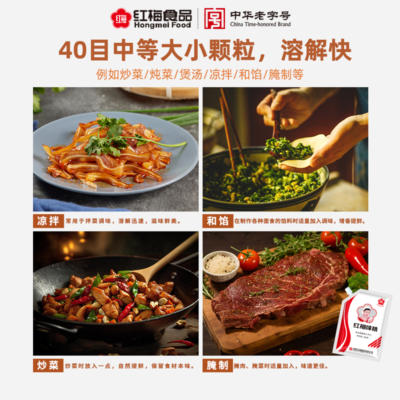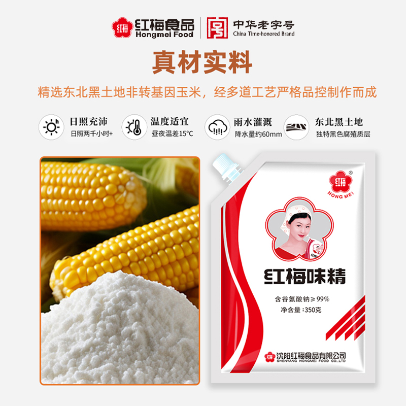 红梅味精350g*3袋家用小包装加嘴调料炒菜煲汤提鲜味素金奖袋装