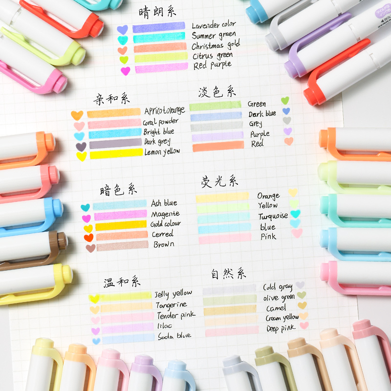 日本ZEBRA斑马荧光笔Mildliner笔WKT7双头荧光记号笔 淡色系小清新柔和色系学生用双头手账标记记号荧光色笔