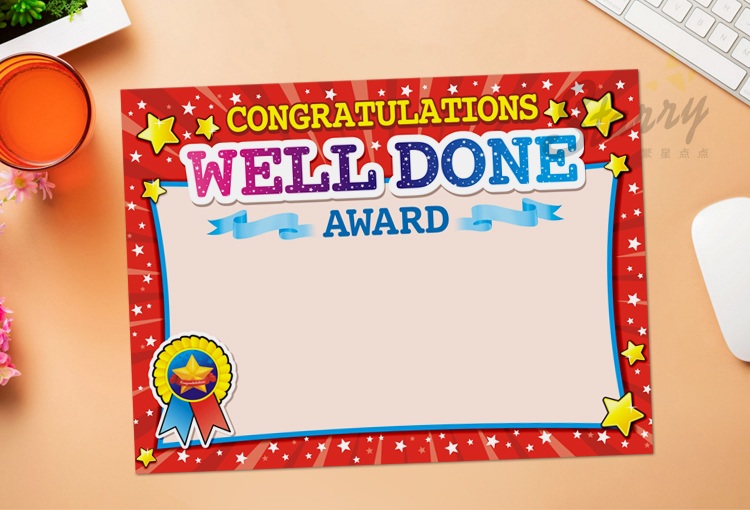 包邮优质英语奖状表扬信英文培训证书教中小学生鼓励welldone空白