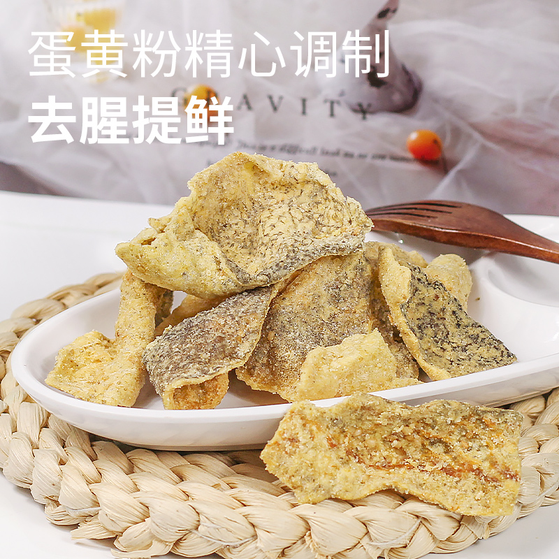 香酥鳕鱼鱼皮零食咸蛋蛋黄鱼香脆酥小炸鱼香辣边角料干货即食商用