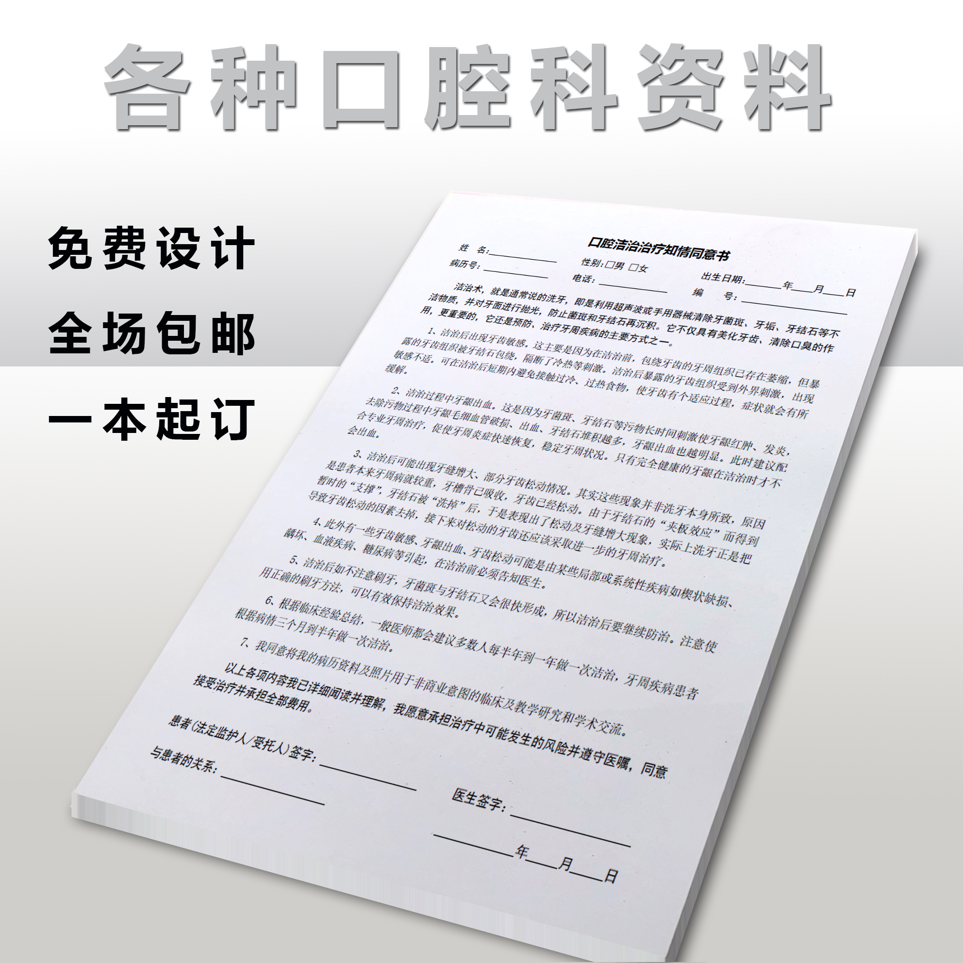 口腔科常用知情同意书牙科诊所通用牙齿拔牙矫正牙科根管治疗通知书补牙处方单镶牙治疗口腔科种植牙根确认书