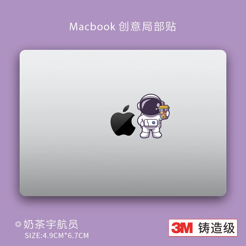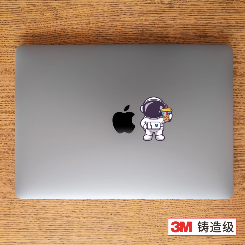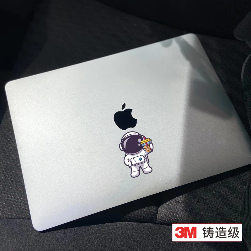艺贴进口铸造级带导气槽易定位技术 奶茶宇航员 适用苹果笔记本电脑macbook pro小米华为dell局部创意贴纸画