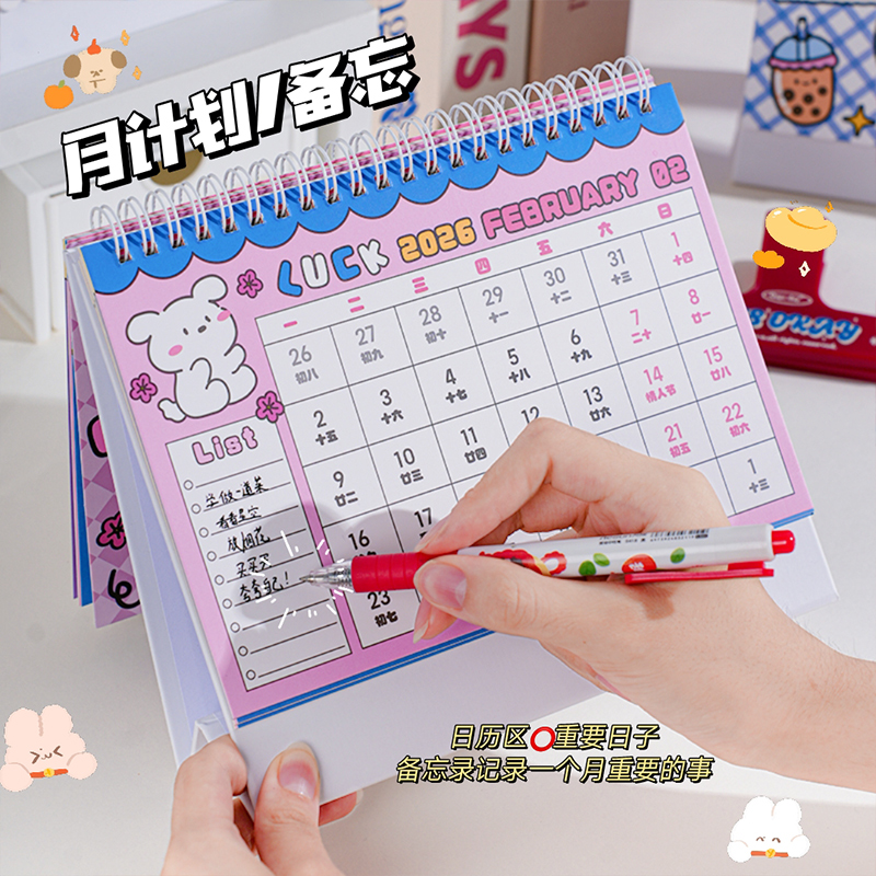 台历2026年新款创意简约办公桌面摆件月历卡通日程计划本ins风考研年历广告定制马年工作打卡小日历订做印刷