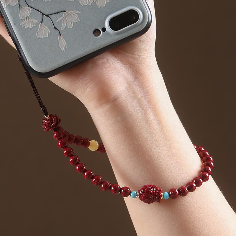2025新款年年有余高档朱砂手机链女精致手腕款手机壳挂绳男本命年